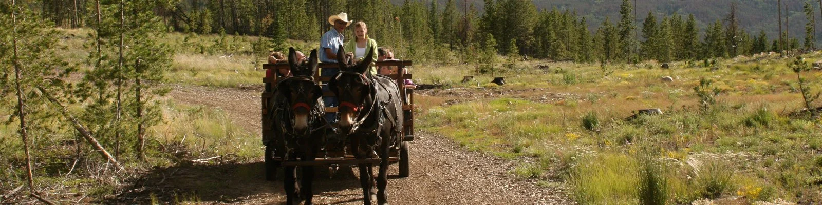Take a buckboard wagon to a summer camp site for an old-fashioned evening of games, barbecue dinner, and an energetic Wild West Show that will keep the wholeteam entertained. Draft mule-team -drawn wagons take guests through unmatched Rocky Mountain scenery to the game corral for some time playing cowboy golf, cornhole toss, horseshoes, and practicing your ropin’. If you are getting hungry, enjoy homemade biscuits and honey, while the 2 Below Zero staff put the final touches on your barbecue dinner and the Wild West Show gets started.